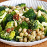 With calcium-rich and hormone-friendly broccoli, which is also great for the liver and gut. Also with protein-packed chickpeas, this is a meat-free meal in itself. Kids love the garlicky pesto sauce and may even win over the most reluctant broccoli eaters!