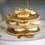 Serve the pancakes with a drizzle of maple syrup, banana slices and some chopped pecan nuts, if you like.