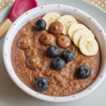 Chocolate for breakfast always seems a huge treat and puts a smile on everyone’s faces! Add banana and peanut butter and you have a sublime warming bowl of goodness to set up a positive start to the day.