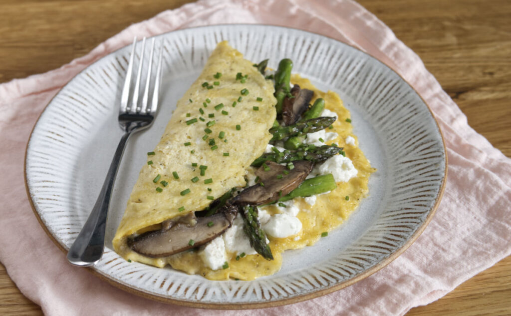 I love omelettes and this recipe includes one of my favourite combinations – salty goat’s cheese with fresh asparagus and creamy mushrooms. It’s made using…