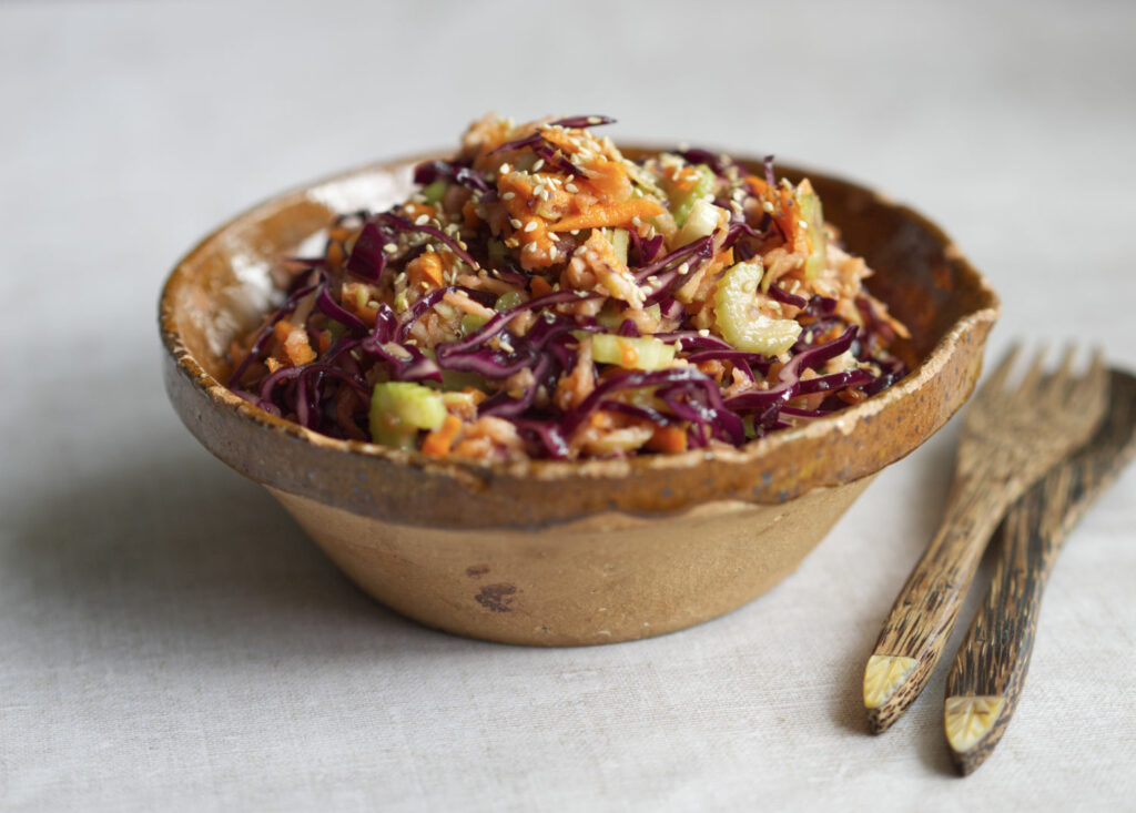 The tangy Asian flavours in this red cabbage slaw recipe are balanced by the sweetness of fresh, seasonal apples. The dressing for this coleslaw, which…