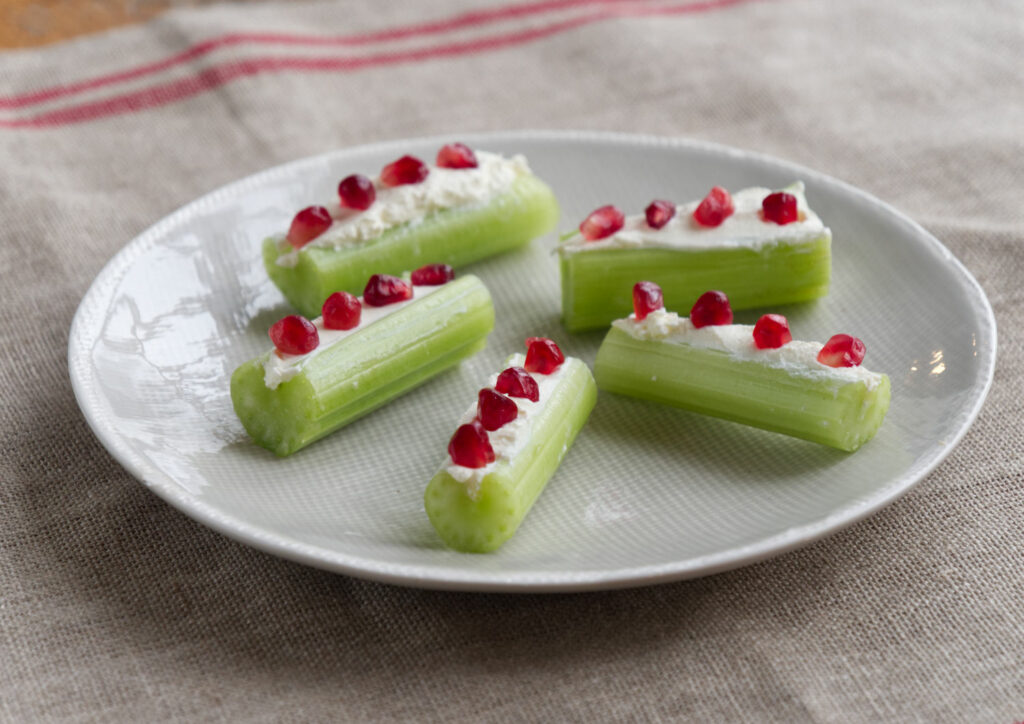 More of a quick snack to grab than a complicated recipe, these sticks of celery stuffed with cream cheese and topped with pomegranate make a tasty after-school snack – they also give a slight Christmassy feel to get your kids into the Christmas spirit. A cheery and appealing snack packed with protein and healthy fats and zero refined sugar.
