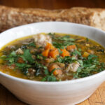 An all in one bowl of goodness, this lemony chicken soup is supercharged with five vegetables and green lentils. The lemon, garlic, thyme and parsley gives it the most scrumptious complex taste, and there is an optional kick of chilli for those who love a touch of fire with their food.