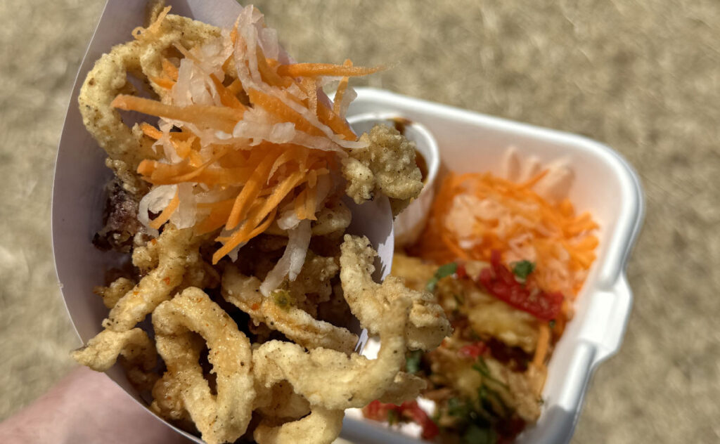 The Duck Truck was probably the winner. Not only was the Duck Salad Box very tasty with wide appeal, but it was really generous with the duck, and this was a full meal in a box, with far more protein than many meals elsewhere plus some lovely pomegranate seeds which added a lovely antioxidant boost. Sorry. We couldn’t wait to eat it, so there’s no photo!