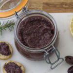 Tapenade is a delicious salty condiment made with olives and is fantastic slathered on crackers or as a dip. I also love it as part of a cheeseboard and it tastes amazing with goat’s cheese.
