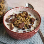 If you love making your own granola, then this is the recipe for you. This is a perfect granola to eat throughout the winter with seasonal juicy cranberries, fragrant cinnamon and tasty orange zest. Serve with warm milk on colder days or sprinkle onto Greek yoghurt as a crunchy topping.
