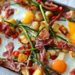 This savoury high-protein breakfast traybake is a total winner for those who love to eat a full cooked breakfast and want to fill up their family’s tummies to last all the way through the morning. This is without the hassle and the mess – and with minimal washing up.