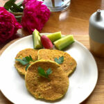 Ricotta and nutmeg make a tasty duo and these little pikelets also contain spiring onions and courgette. Finely grated courgette cleverly doesn’t show it’s greenness too much, which is a win for fussy eaters who like to dodge their greens. Nutmeg is a lovely little tummy settler for windy tums.