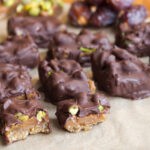 These pistachio salted caramel no-bake bites are totally delicious and make a perfect sweet treat snack for anyone who loves a chocolate/caramel/nutty combo! So much healthier than Dubai chocolate, but with a similar flavour and lovely nutty crunch. They taste simply divine and are an amazing crowd pleaser – spot the joy in everyone’s faces when they take their first bite!