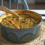 This delicious sweet potato dhal really hits the spot with its gently spiced and super nourishing ingredients. I’ve added coconut milk to make it extra creamy and comforting! You may well find these ingredients in your store cupboard or freezer, so it is a light but warming meal to whip up to feed your family.