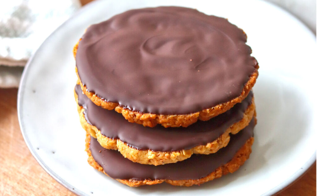 A chocolate covered oat biscuit is a classic and simple sweet treat that the family can enjoy together. This recipe is only sweetened with honey…