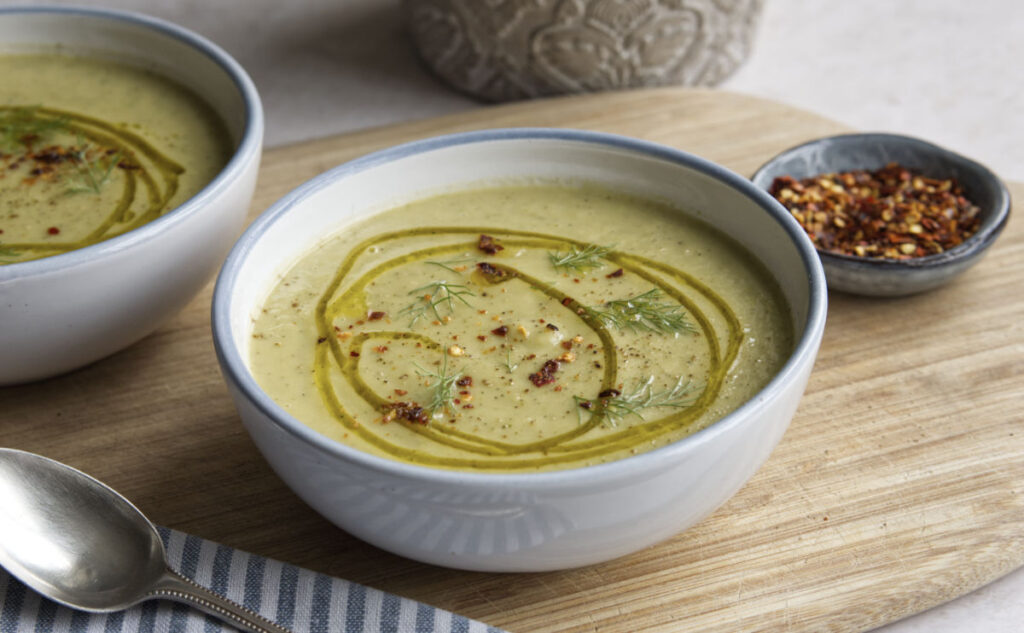 This smooth and lemony soup is made with courgette and fennel combined with chicken stock, leek, and cannellini beans to create a tasty and filling…