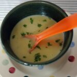 This leek and potato bowl of goodness is made from gut-friendly bone broth and makes a delicious dairy free soup. It contains a good balance of carbs, fats and proteins as well as a hidden green vegetable and a green herb, so a whole meal in one bowl!